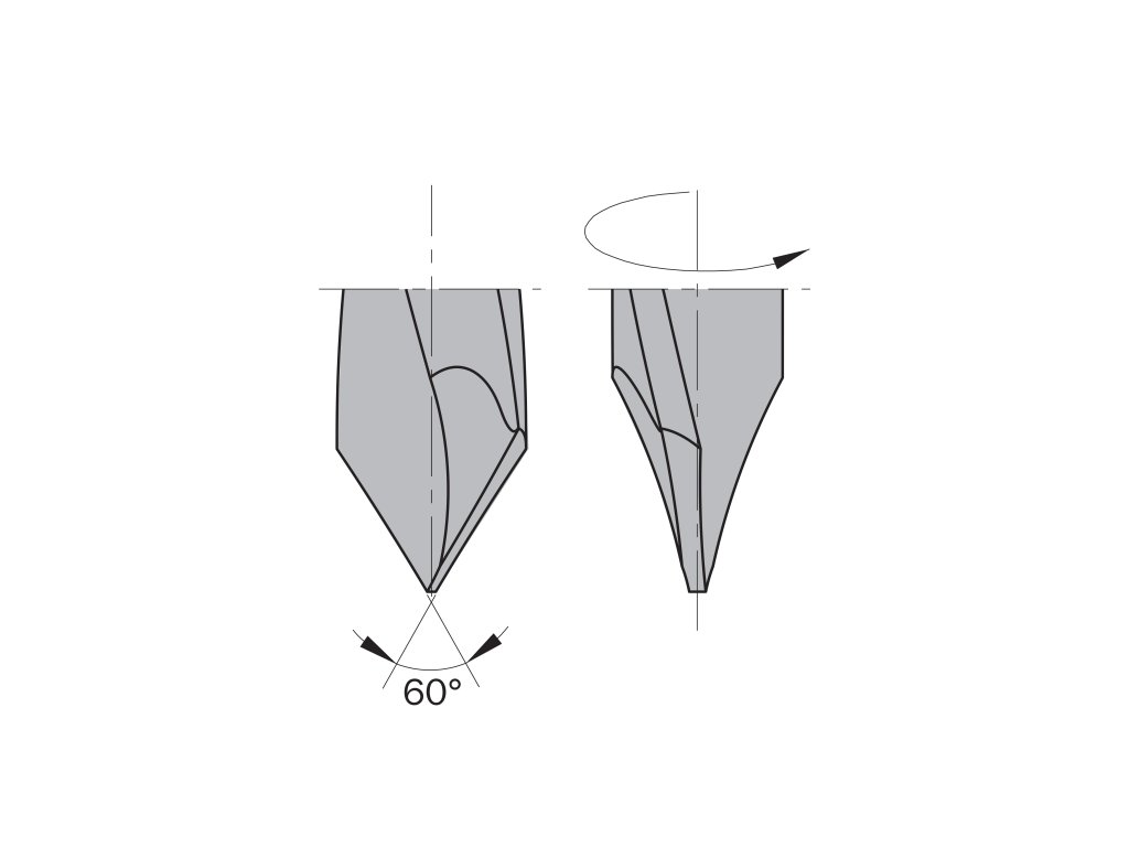 • Rozdíl je ve speciálně vybroušené vrtací hlavě pro průchozí otvory.