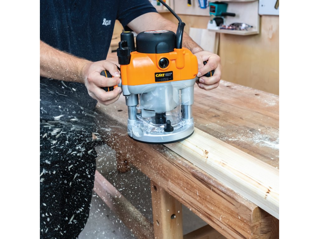 Horní frézka CMT7E s 2400W s plynulou elektronickou regulací otáček, nastavitelnou výškou frézování a pokročilými bezpečnostními funkcemi včetně NVR systému. Ideální volba pro náročné řemeslníky, kteří hledají spolehlivost, přesnost a komfort při práci.