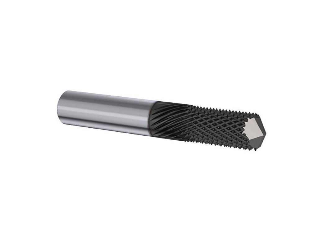 Fréza pro vrtání, řezání a frézování do kompozitních materiálů, skelných vláken, karbonových vláken a fenolických desek. Úhel čela 135° umožňuje práci na vertikálních CNC strojích a zaručuje minimální ohýbání zpracovávaného materiálu. Pro použití v CNC obráběcích a vrtacích centrech nebo ručních frézkách.
