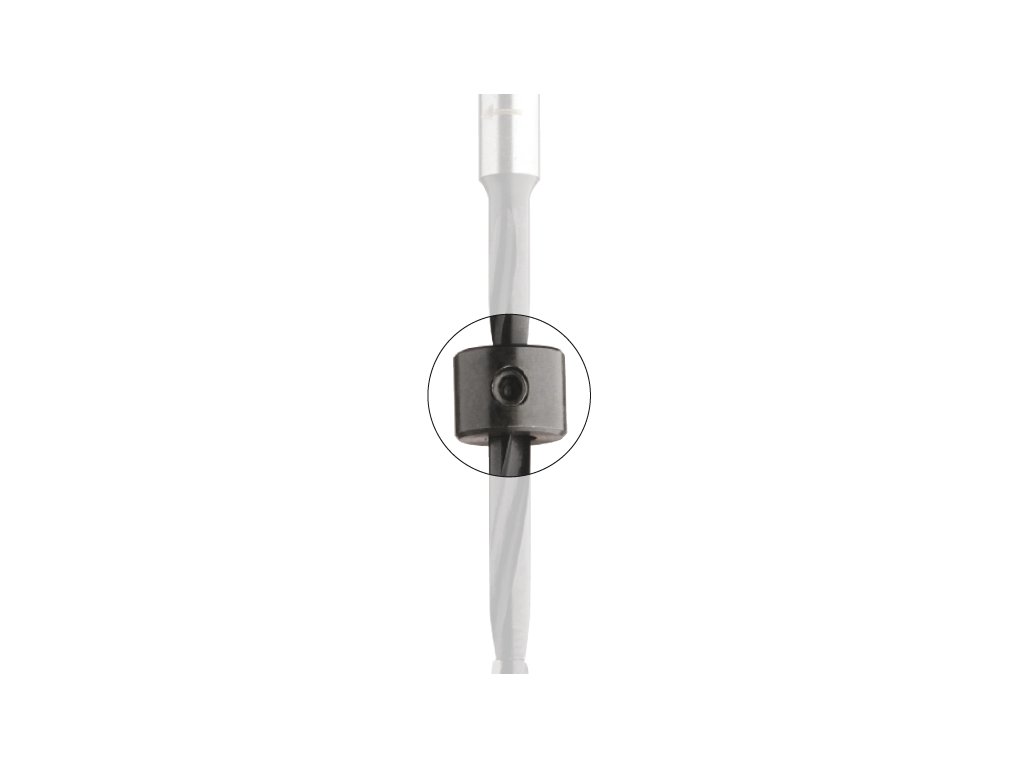 Hloubkový doraz na vrtáky k omezení hloubky vrtání. Snadné nastavení za pomoci upínacího šroubku a inbusového klíče. Klíč je součástí balení.