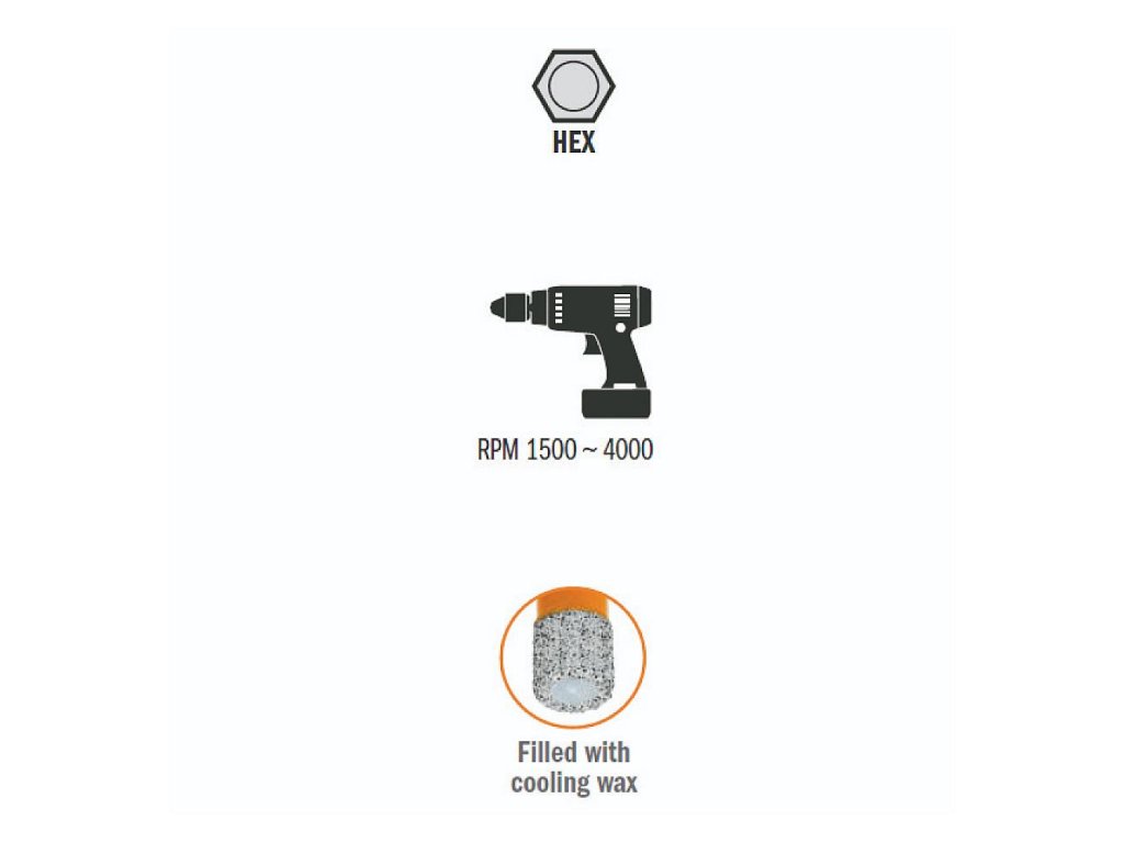 • Vyplněný chladícím voskem pro vrtání bez vody.