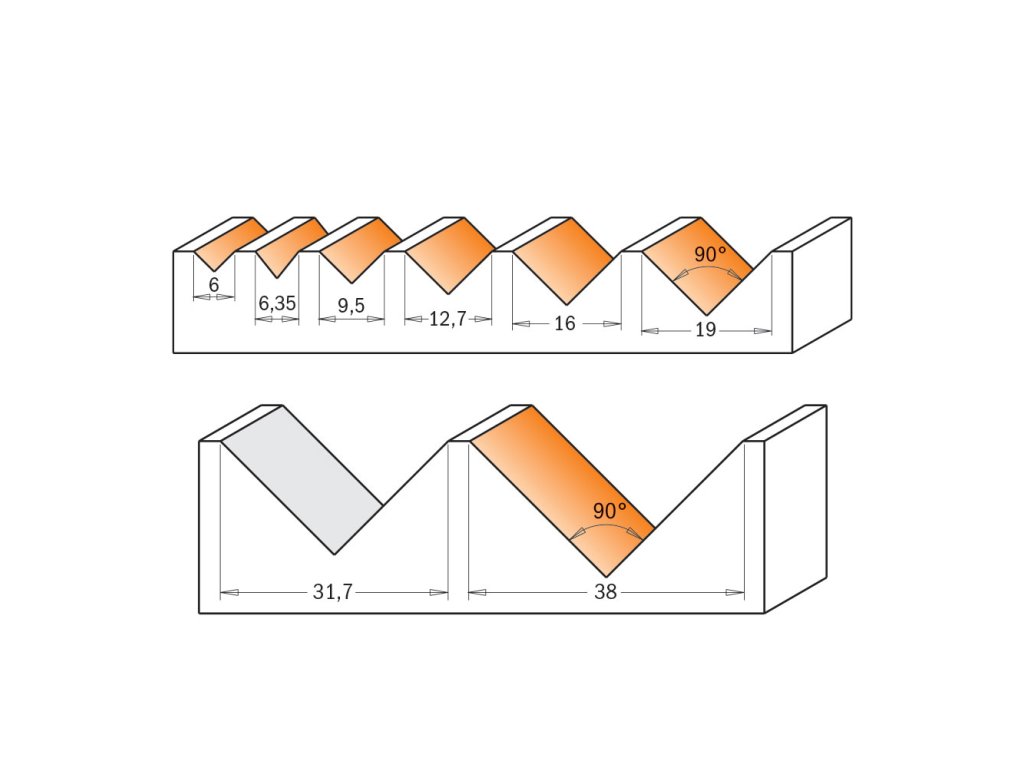 CMT C915 Fréza na V drážku 90° - D16x12,7 90° S=12 HW