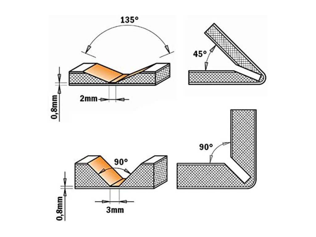 Kompozitní panely ALUCOBOND® plus lze formovat velice snadno pomocí V-drážkovací frézy C915.001. Technika nazvaná „frézování a skládání“ umožňuje výrobcům vytvářet tvary různé geometrie a velikosti. Horní frézkou vyfrézujte V-drážku jejíž dno se dotýká vnějšího obalu. Nedotčená vnější deska může být nyní ručně ohnuta s čistou linií kopírující vyfrézovanou drážku. Vnější rádius ohnuté desky závisí na tvaru drážky a její hloubce. Drážku je možné frézovat jak CNC tak i horní frézkou. Metodu „frézování a skládání“ je možné použít na všechny dostupné povrchové úpravy kompozitních panelů ALUCOBOND® plus.