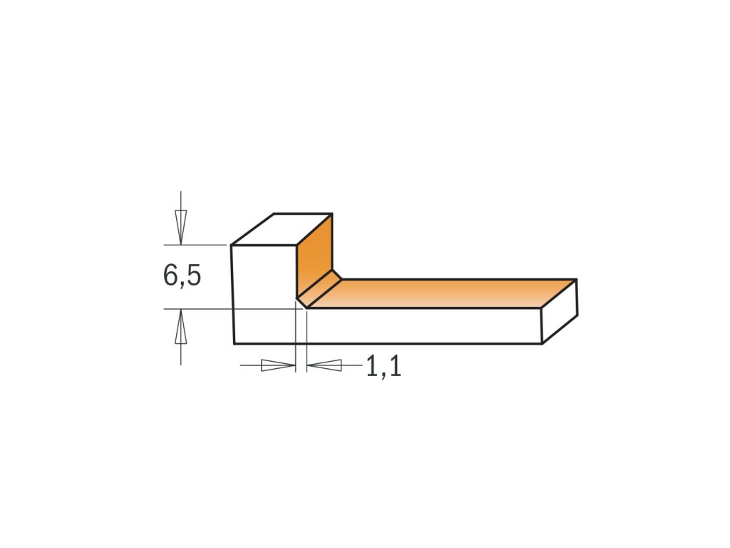 Fréza je díky šesti břitům konstruována pro hladké řezy do plochy materiálu. Fréza vytváří u spodní hrany mírné zkosení pro snadné čištění a je tedy vhodná i pro frézování pohledových zapuštění a výklenků do pracovních desek nebo stolů.
