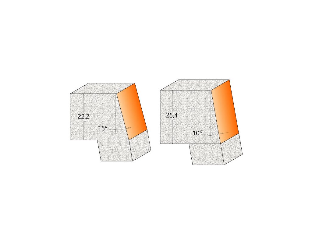 Tyto frézy jsou konstruovány pro spojení horní pracovní desky a umyvadla nebo dřezu Corianu pod úhly 10° nebo 15°. Múže být použita také s frézami C98054111 nebo C98054211, které zaoblý hranu radiusem nebo esovitým profilem.