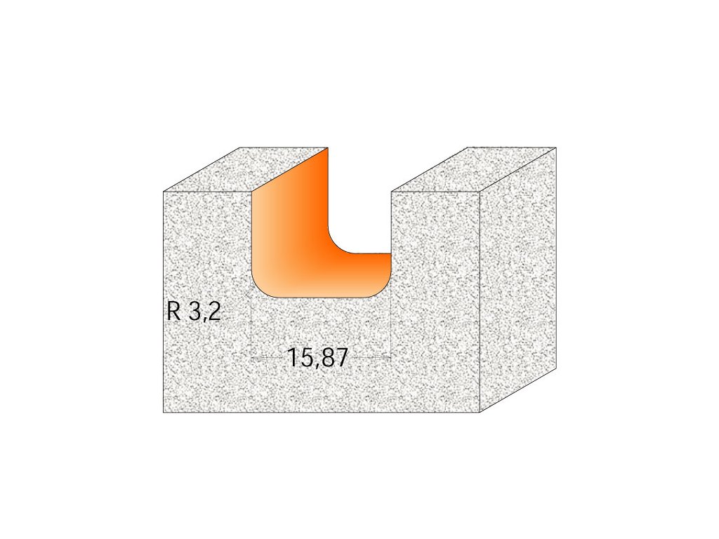 CMT C981 Drážkovací rádiusová fréza CORIAN - D15,87 I12,7 R3,2 S=12