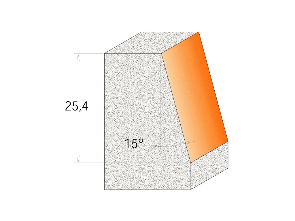 Tato úhlová fréza má břit pod úhlem 15° a je určena na opracování hran desek z CORIANU. Určená pro ruční horní frézky.