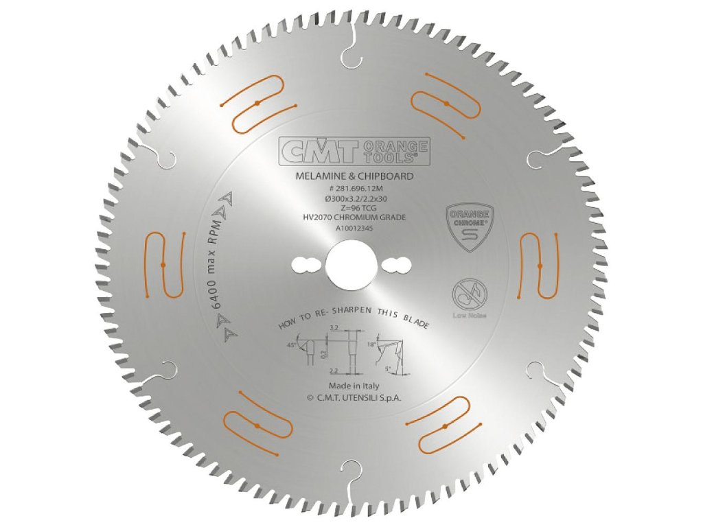 Pilový kotouč pro pily s předřezem. Kotouč s chromovaným povrchem, který redukuje ulpívání zbytků lepidla a pryskyřice na těle kotouče. Trapézové zuby z extra tvrdého tvrdokovu pro řezání lamina, dřevotřískových desek a MDF. Má tlumící drážky vyplněné oranžovým polyuretanem pro snížení vibrací a hlučnosti. Vysoká životnost.