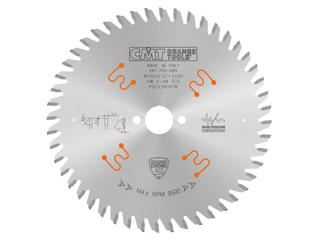 CMT CHROME Pilový kotouč na lamino a kompozity - D160x2,2 d20 Z48 HW