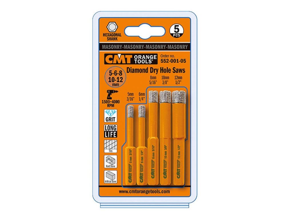 CMT FASTX4 Sada diamantových vrtáků 5ks D5-6-8-10-12