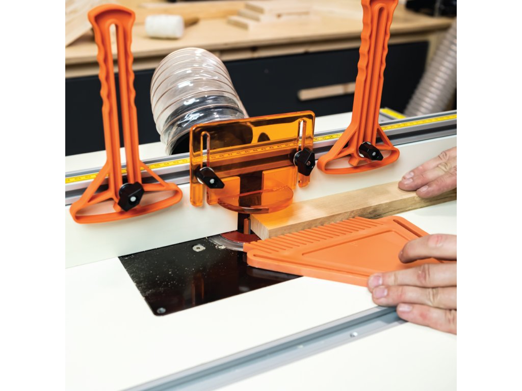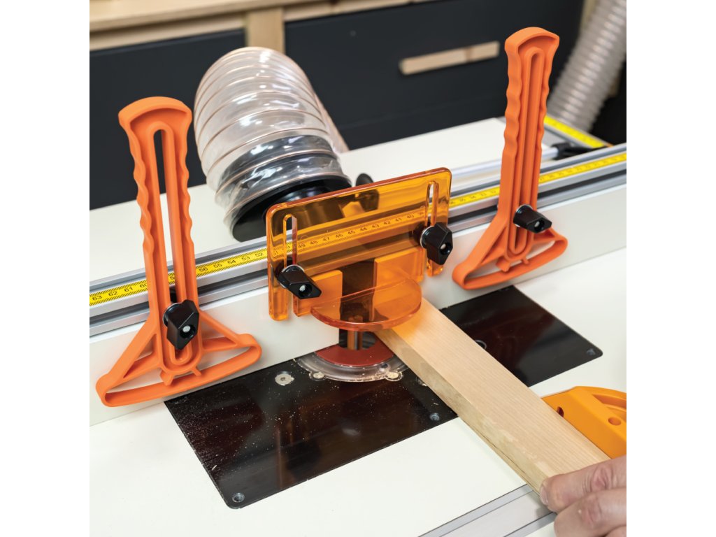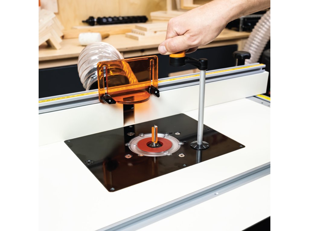 Středová deska je připravena pro upnutí a využití CMT horních frézek. Přesto je možné upnout všechny frézky libovolných značek a modelů na trhu.