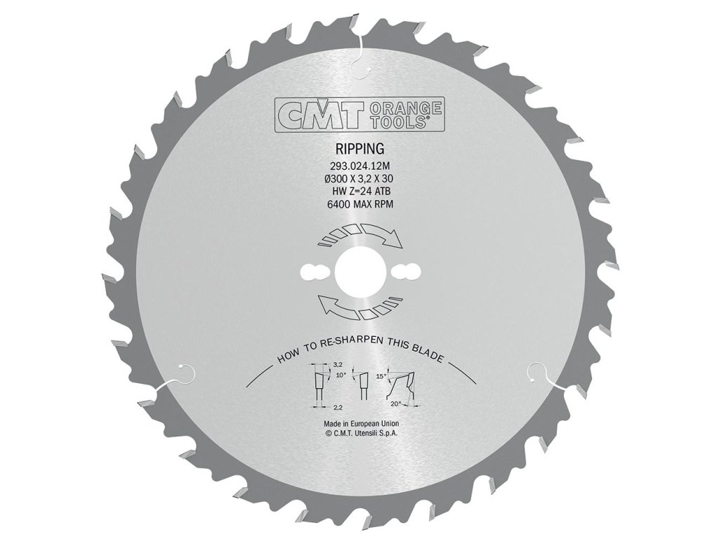 Pilový kotouč se střídavě šikmými tvrdokovými zuby HW pro podélné řezy tvrdého a měkkého dřeva. Povrch kotouče je lakovaný pro zvýšenou odolnost proti korozi. Zub s omezovačem třísky zabraňuje zpětnému rázu. Expanzní drážky zaručují rovný řez. Určeno pro stroje s ručním i strojním posuvem.