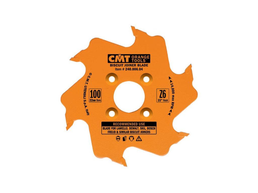 CMT lamelovací kotouč s teflonovým oranžovým povrchem je vyroben z jakostní oceli. Tělo je osazeno tvrdokovovými zuby, které garantují dlouhou životnost. Určeno pro lamelovací frézky. Vhodné pro značky Lamello, Dewalt, Porter-Cable, Skil, Bosch, Freud a další klasické lamelo stroje.