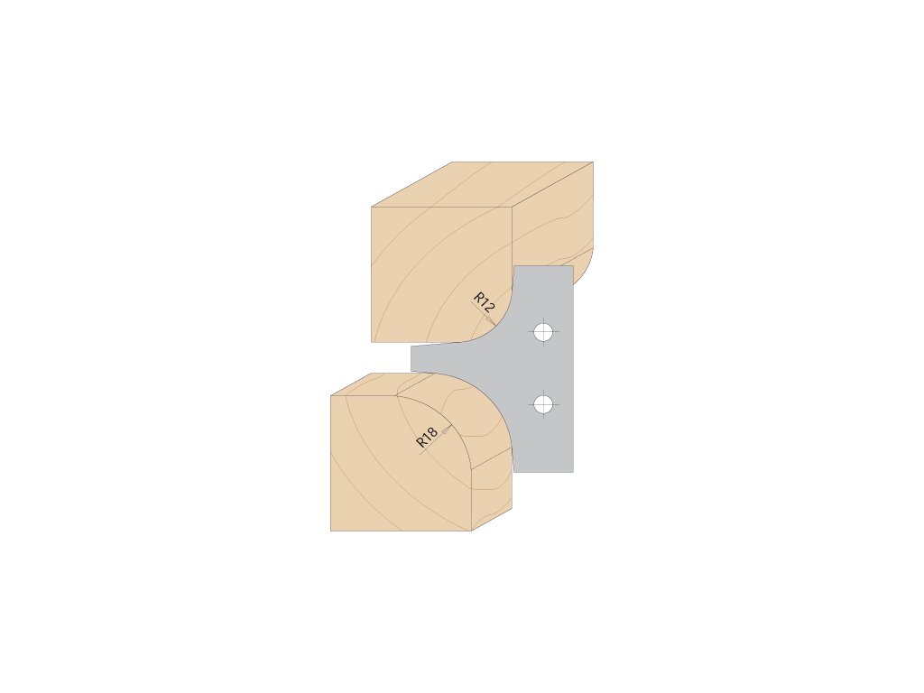 Tato multiradiusová frézovací hlava je určená pro radiusové zaoblení hran. Žiletky jsou vybroušeny ze dvou stran s větším a menším radiusem. Standardně je frézovací hlava dodávána s HM žiletkami s rádiusem 15 a 20 mm. Je možné doobjednat další sadu žiletek s rádiusy 12 a 18 mm. Určeno k použití se spodní frézkou. Výborně se hodí pro všechny materiály, zejména na tvrdé dřevo a deskové materiály.