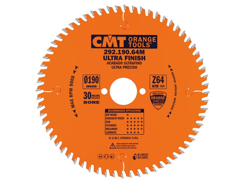 CMT Orange Pilový kotouč pro elektronářadí, finální řez - D190x2,6 d30 Z40 HW