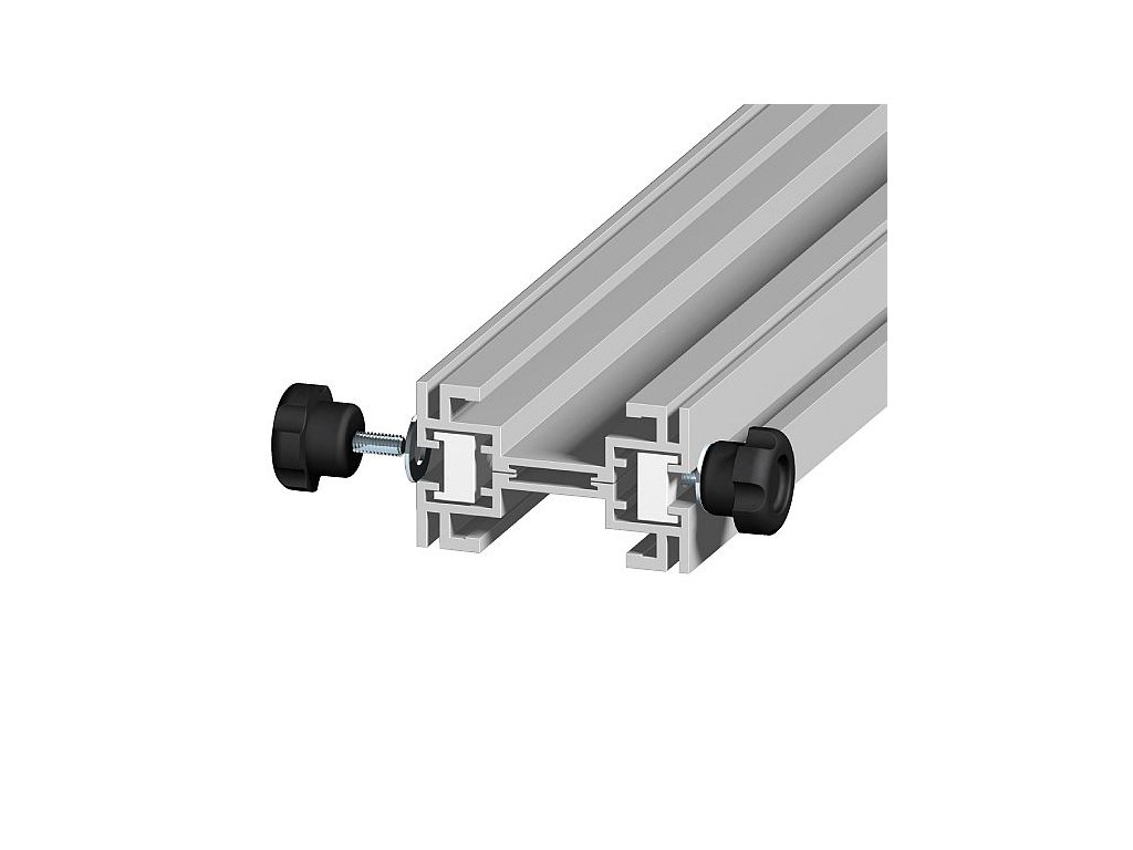 Pro změnu a rozšíření využití pravítek s rychloupínacím systémem Vám stačí dvě pravítka, která položíte na sebe horní plochou a zajistíte je pomocí čtyř spojovacích T-konektorů. Připevněte spojená pravítka spodními čelistmi k desce stolu a k horním pravítko můžete upnout dřevo pomocí upínacího systému druhého pravítka. Díky nízkému profilu čelistí je pracovní povrch dobře dostupný pro opracování. Dvě spojená pravítka lze kdykoliv znovu rozebrat a používat je opět samostatně.