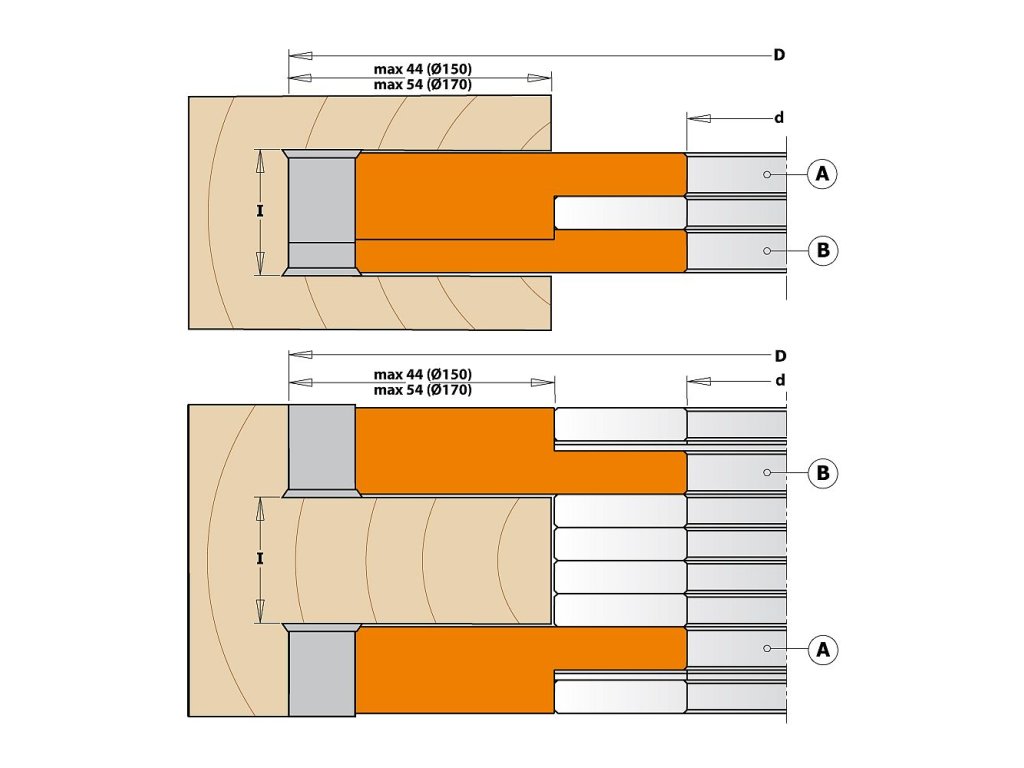 CMT Stavitelná drážkovací fréza 2 dílná MAN - D150x14-28 d30 Z2+2 V2+2 ALU