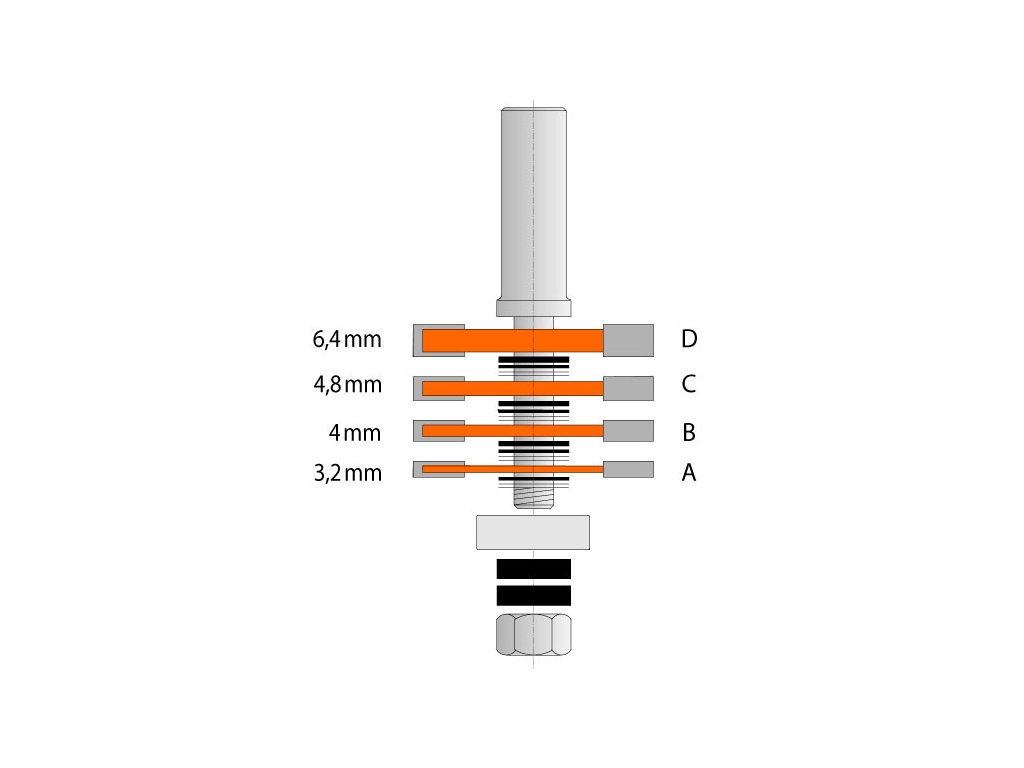 • 17 ks - Podložky (8x 0,1 mm, 4x 0,5 mm, 3x 1 mm a 2x 4 mm)