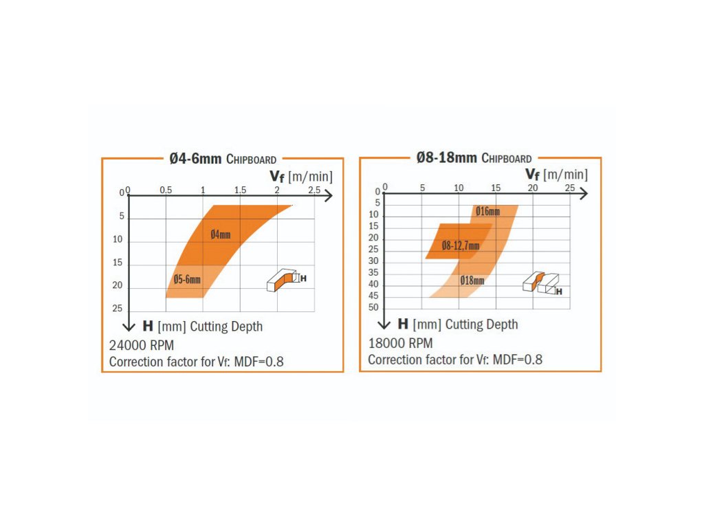 Spirálová fréza má půlené ostří, v dolní části s pozitivním sklonem a v horní části s negativním sklonem. Tento typ ostření je ideální pro frézování všech materiálů. Výhodou je perfektní hrana řezu (bez otřepů) na dolní i horní straně desky. Určena pro použití na CNC obráběcích centrech i ručních horních frézkách. Fréza je ideální na čisté řezy v tvrdých materiálech, jako jsou lamino desky, plasty, tvrdé dřevo, překližka a kompozity.