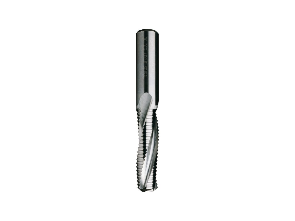 Špička frézy je zkosená pod 60° pro frézování skrz materiál.