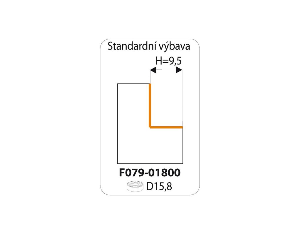Falcovací fréza je vybavena kopírovacím vodícím ložiskem B = 15,8 mm pro šířku falcu H = 9,5 mm.