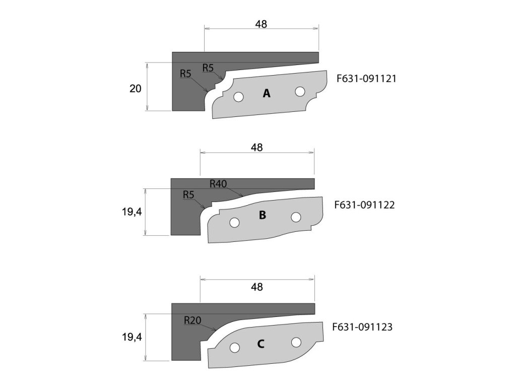 IGM F631 Výplňová fréza MEC - Profil A, D160x20 d30mm Z2 spodní ALU