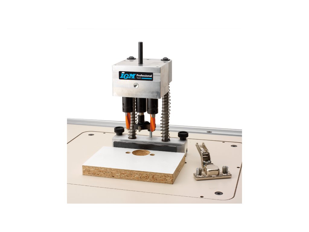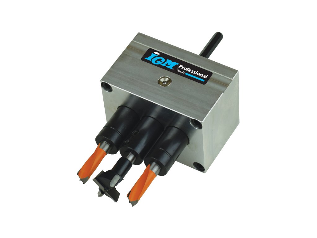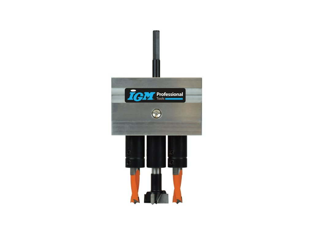 Revoluční vrtací přípravek se skládá ze stojanu a 8 typů vrtacích hlav, které lze na stojan namontovat. Můžete tak vrtat otvory pro závěsy Hettich, Blum, Mepla, Grass, FGV, pro malé závěsy 26mm, pro okenní kliky nebo použít hlavu s 5 vřeteny s roztečí 32mm pro vrtání děr pro kolíky či nosiče polic. Použití s ruční vrtačkou nebo na stojanových vrtačkách. Pro mazání použijte olej Mobil SHC100.
