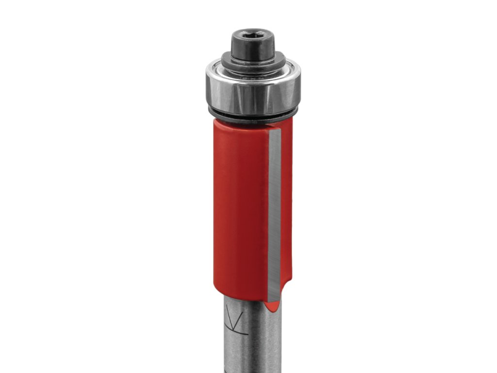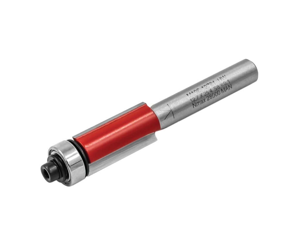 Ořezávací fréza M106 se dvěma zuby z tvrdokovu a kopírovacím ložiskem je určená pro ořezávání podél šablony upevněné pod obráběným materiálem. Lze použít pouze v ručních frézkách.