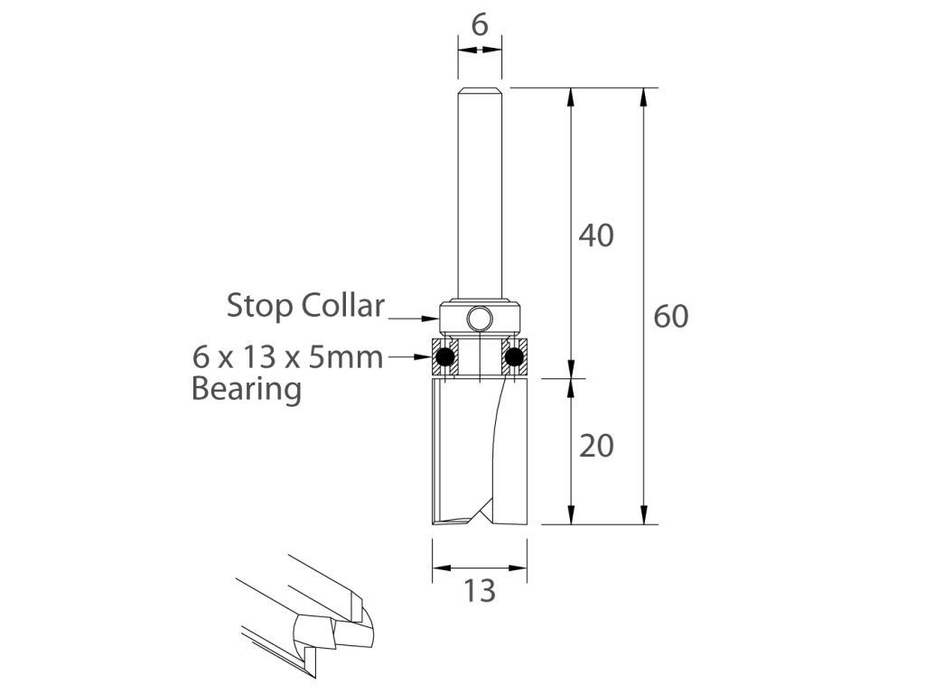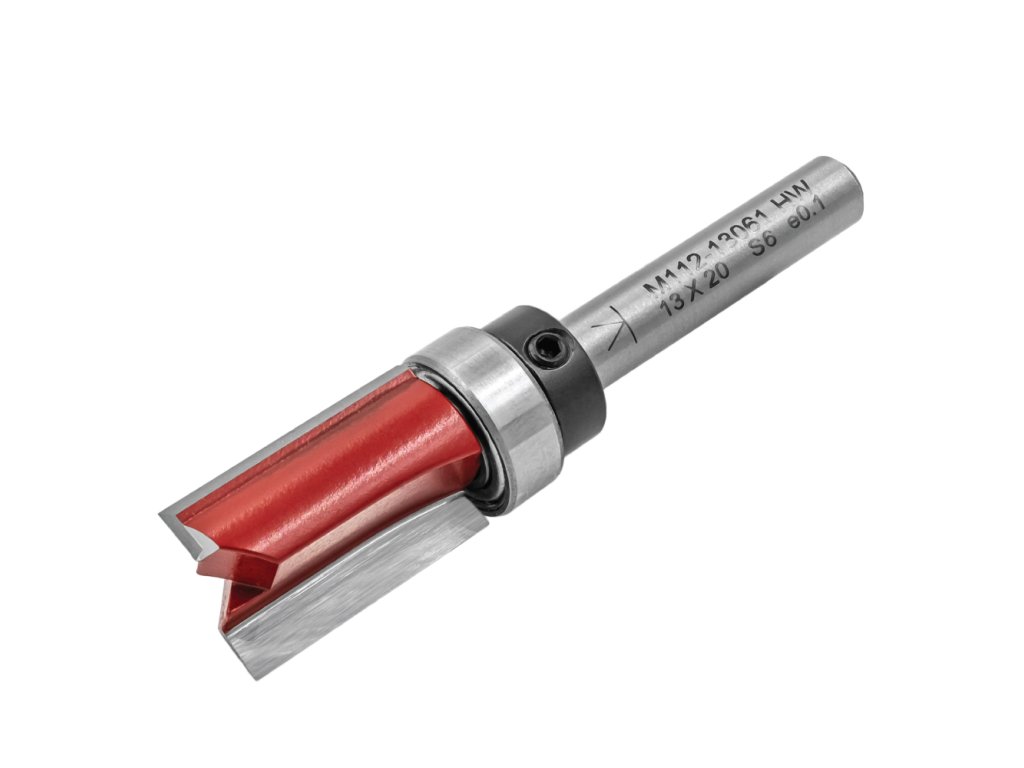 Drážkovací fréza M112 se dvěma zuby z tvrdokovu a ložiskem je určená pro ořezávání a drážkování podél šablony upevněné nad obráběným materiálem. Lze použít pouze v ručních frézkách.