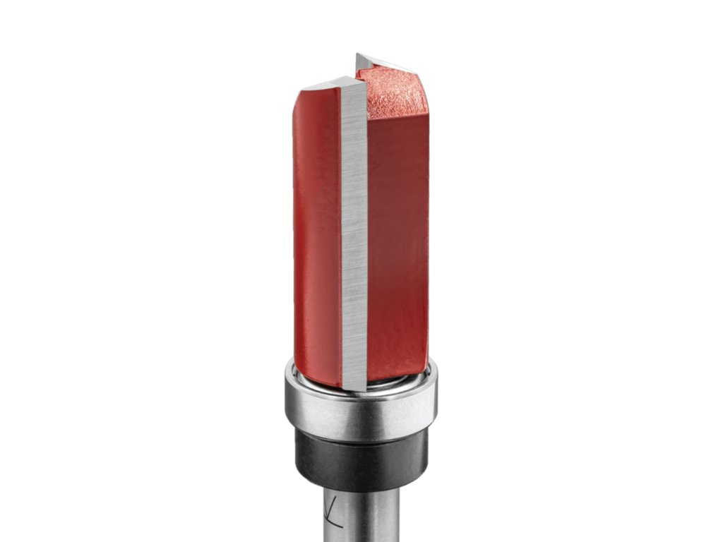 Drážkovací fréza M112 se dvěma zuby z tvrdokovu a ložiskem je určená pro ořezávání a drážkování podél šablony upevněné nad obráběným materiálem. Lze použít pouze v ručních frézkách.