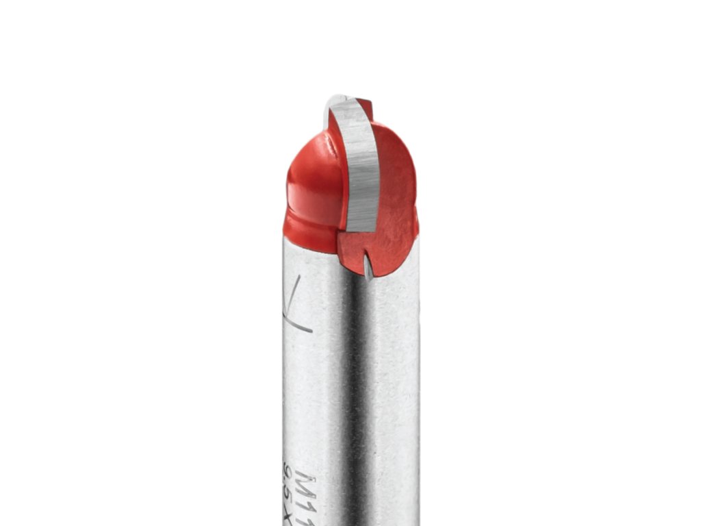 Čelní vypouklá fréza M114 se dvěma zuby z tvrdokovu je určená pro výrobu drážek ve tvaru „U“, například pro krájecí prkénka, pracovní desky z umělého kamene, dveře nebo čela zásuvek. Lze použít v ručních i CNC frézkách.
