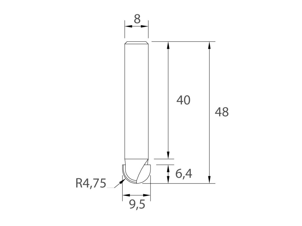 IGM M114 Čelní vypouklá fréza - R4,75 D9,5x6,4 L48 S=8 HW