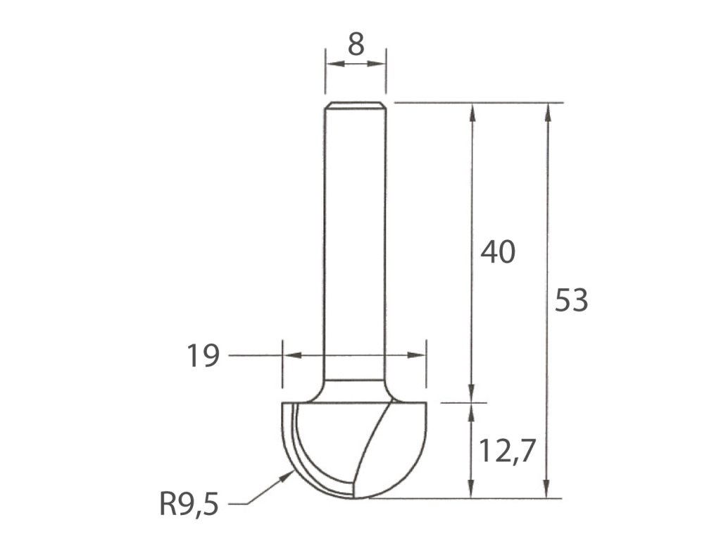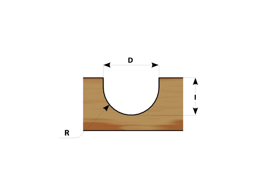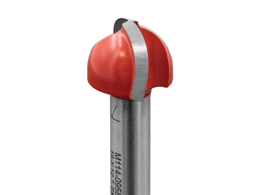 Čelní vypouklá fréza M114 se dvěma zuby z tvrdokovu je určená pro výrobu drážek ve tvaru „U“, například pro krájecí prkénka, pracovní desky z umělého kamene, dveře nebo čela zásuvek. Lze použít v ručních i CNC frézkách.