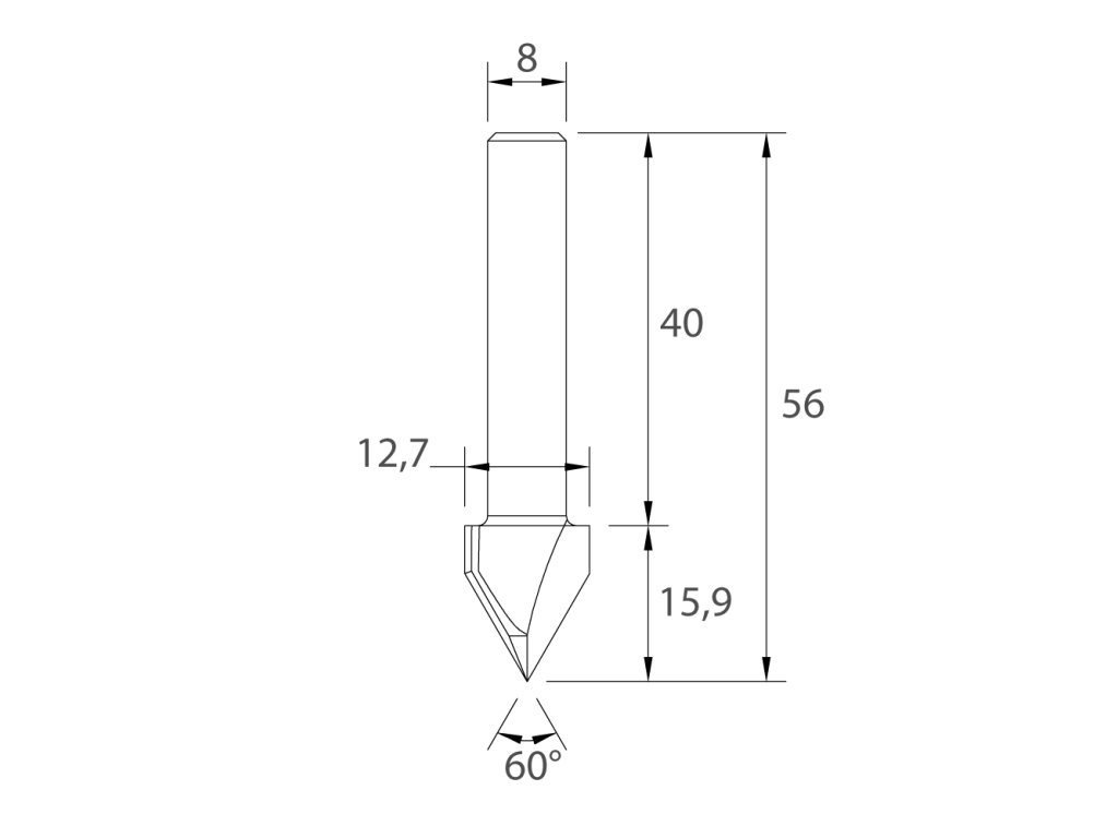 Popisová fréza 60° M116 se dvěma zuby z tvrdokovu je určená pro frézování jemných drážek a řezů s přesností laseru, vytváření nápisů a popisů s různou hloubkou řezu na dřevě nebo dřevěných materiálech. Lze použít v ručních i CNC frézkách.