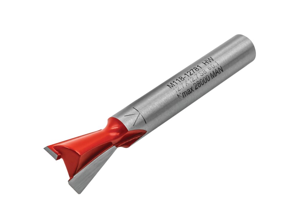 Fréza M118 se dvěma zuby z tvrdokovu je určená pro tvorbu rybinového spoje a rybinových drážek. Lze použít v ručních i CNC frézkách.