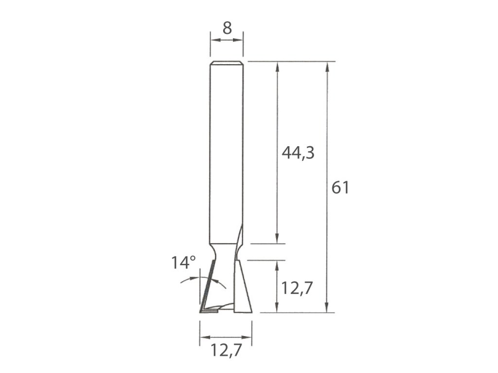IGM M118 Fréza pro rybinový spoj - 14° D12,7x12,7 L61 S=8 HW