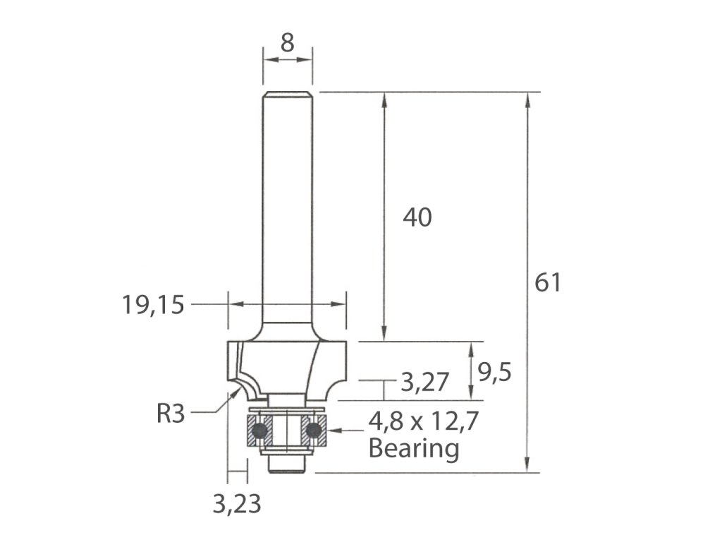 Zaoblovací fréza vydutá M138 se dvěma zuby z tvrdokovu je určená pro zaoblení hrany materiálu. Lze použít pouze v ručních frézkách.
