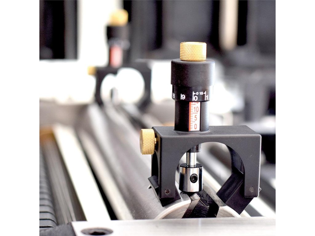 Ustavovač je vybaven mikrometrickou ryskou pro přesné a rovnoměrné nastavení hloubky úběru třísky po celé délce válce.