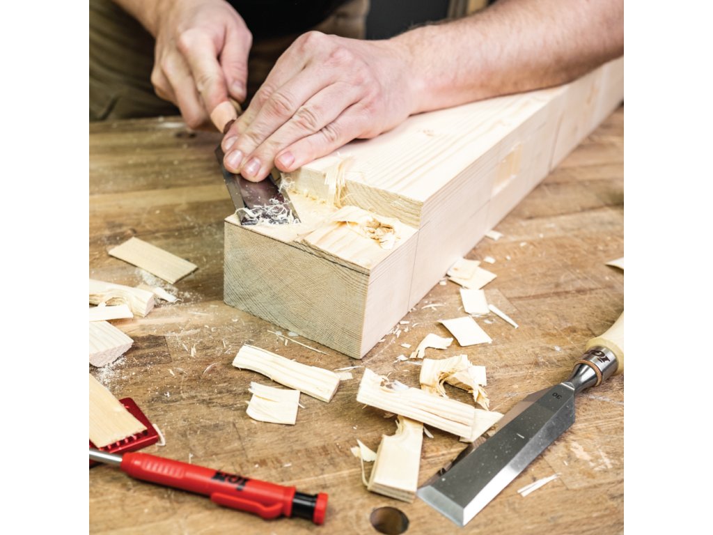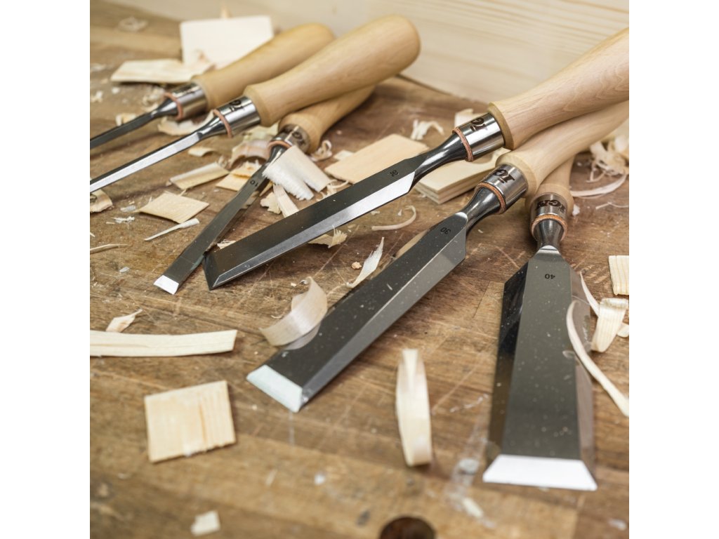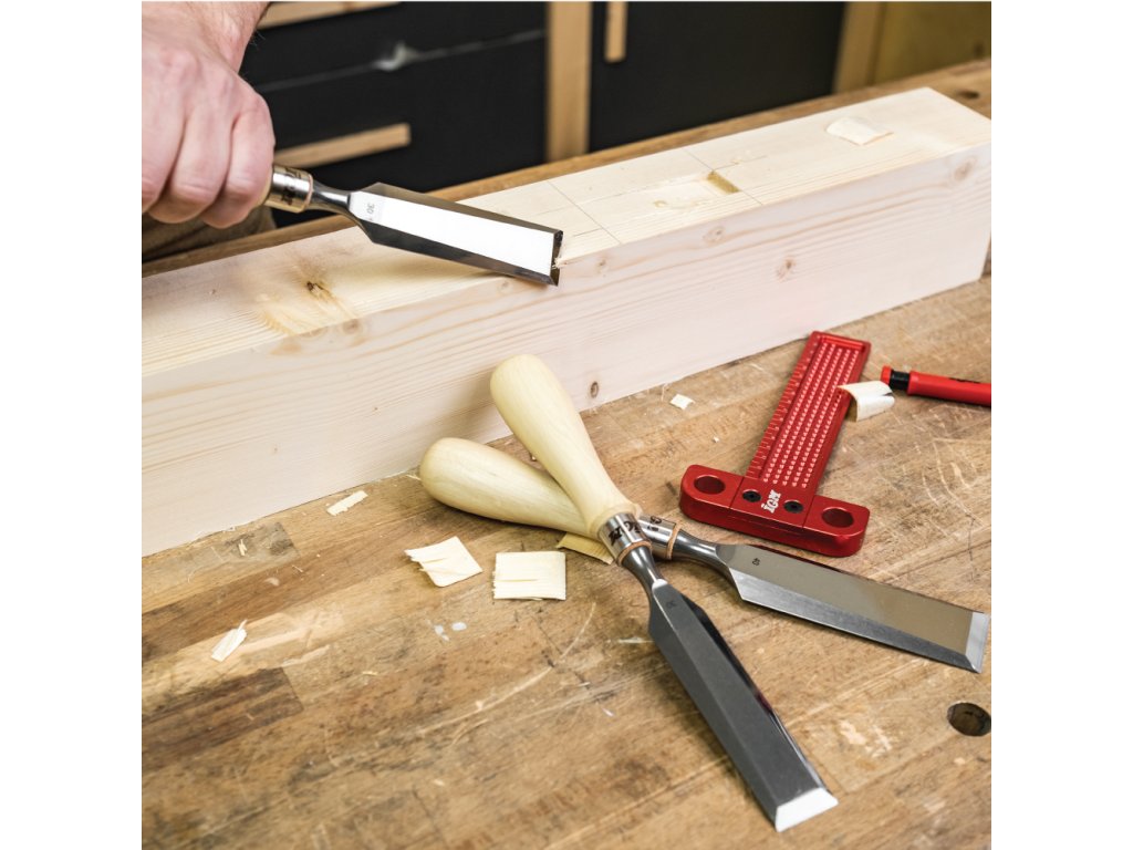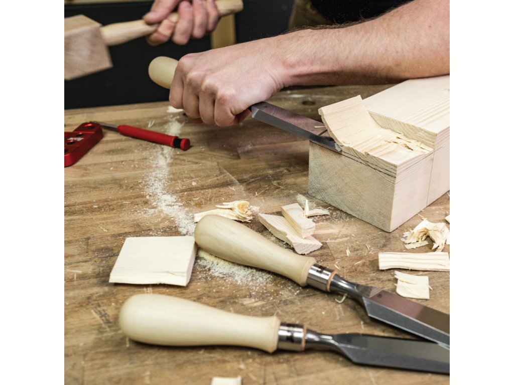 Vynikající ploché dláto značky IGM je vhodné pro truhláře, kteří ocení kvalitu a tradiční zpracování. Je určeno na dlabání ostrých rohů, ozubů, rozporů a čepů. Jemně vybroušená, leštěná čepel je kovaná z kvalitní vysoce legované oceli s tvrdostí 60 HRC. Proto oproti běžným dlátům zůstává dlouho ostrá. Hranu ostří zbroušenou pod 25° úhlem vyžaduje před prvním použitím honování pro dosažení mimořádné ostrosti. Také doporučujeme provést 30° mikro nábrus na hraně ostří pro prodloužení výdrže ostří. Úzké, zbroušené boky čepele jsou ideální pro práci v těsných prostorách, zvláště při výrobě čepů a rybin. Rukojeť dláta je vyrobena z kvalitního a houževnatého habru, který odolá i silným úderům paličkou. Rukojeť je ručně najemno leštěná a pastovaná s originálním ergonomickým tvarem, který příjemně padne do ruky. Dláto je velmi odolné proti nárazům, protože je čepel usazena v pevné habrové rukojeti s koženým kroužkem pro tlumení nárazů a zděří z nerezové oceli. To oceníte zvláště při tvorbě dlabů pomocí paličky. Ploché dláto IGM je zkrátka jedinečný nástroj, který Vám vydrží celé generace.