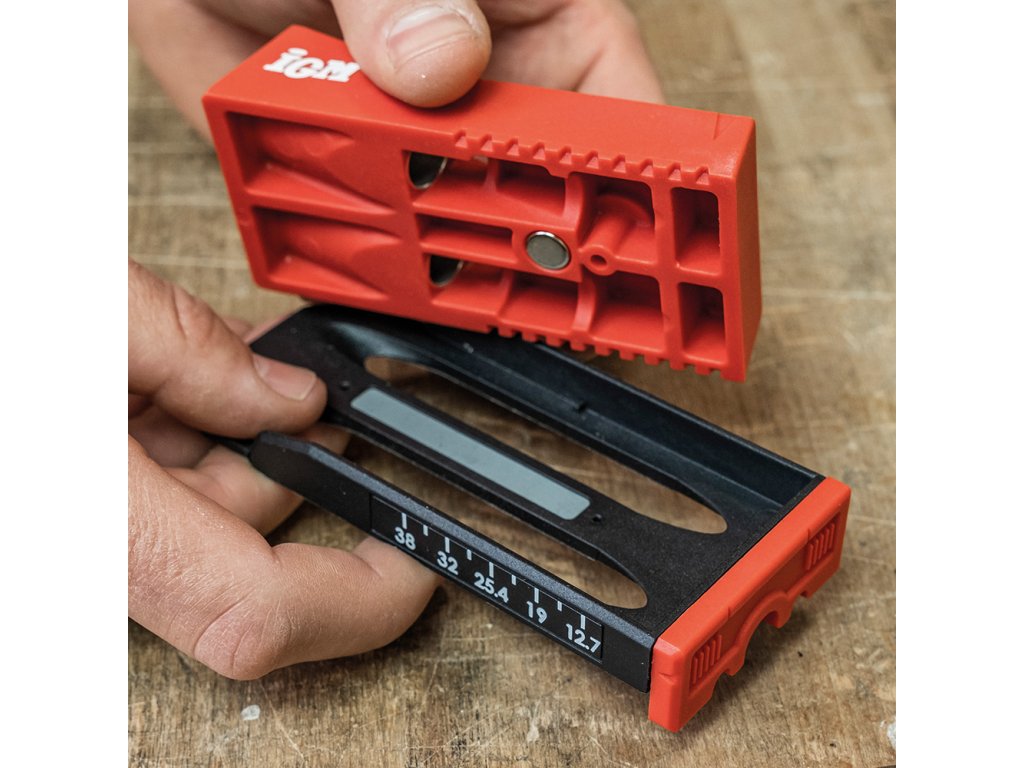 Dvojitý svrtávací přípravek pro snadné vrtání skrytých šroubovaných spojů bez složitého nastavování. Ocelové pouzdro s magnetem pro upnutí svěrkou. Ideální pro úhledné spojení dřevěných dílců při výrobě nábytku a dalších truhlářských projektech.