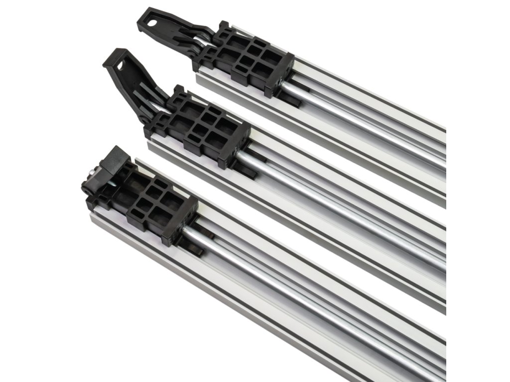 Pravítko je vyrobeno z nízkého duralového profilu, který je pevný, odolný a drží přesnost. K pravítkům nabízíme volitelné příslušenství, například sadu spojovacích konektorů, která umožní spojení dvou pravítek k sobě, čímž rozšíříte jejich využití jako rychloupínací přípravek.