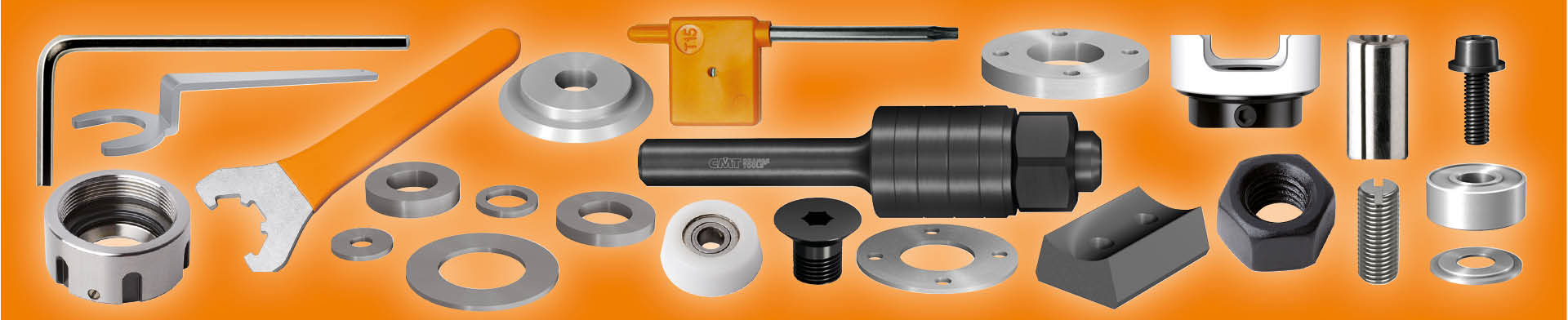 V této sekci najdete vyměnitelné nože, šrouby pro nože a ložiska, jednotlivá ložiska, šestihranné klíče, dorazové kroužky, kryty fréz, upínací trny a všechny ostatní náhradní díly.